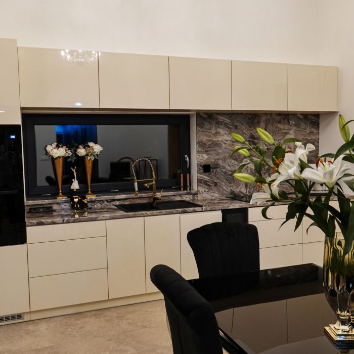 Jakmile překročíte práh této vily, budete okouzleni úchvatným interiérem. Každý detail je pečlivě navržen tak, aby poskytoval pocit luxusu a pohodlí. Vila je prostorná, plná přirozeného světla. Elegantní obývací pokoj s výhledem na rozsáhlou zahradu je srdcem domova, kde si můžete odpočinout a relaxovat. Kuchyně je vybavena moderními spotřebiči a poskytuje tak dostatek místa pro ty, kteří si rádi tvoří vlastní kulinářská díla.