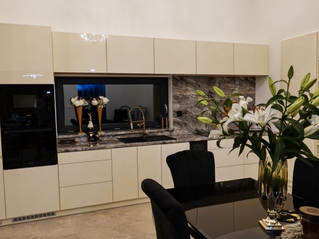 Jakmile překročíte práh této vily, budete okouzleni úchvatným interiérem. Každý detail je pečlivě navržen tak, aby poskytoval pocit luxusu a pohodlí. Vila je prostorná, plná přirozeného světla. Elegantní obývací pokoj s výhledem na rozsáhlou zahradu je srdcem domova, kde si můžete odpočinout a relaxovat. Kuchyně je vybavena moderními spotřebiči a poskytuje tak dostatek místa pro ty, kteří si rádi tvoří vlastní kulinářská díla.